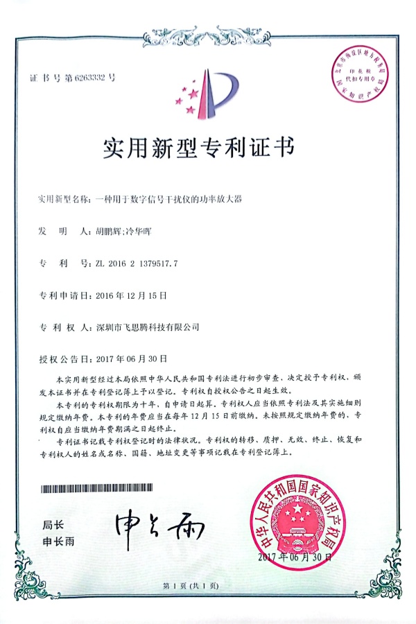 凭借卓越的产品品质,飞思腾科技在功放领域赢得了良好的声誉。 生产部配备了多种先进的测试仪器,包括Agilent N9020A频谱分析仪、N4407B功率计、Chroma 6210-40直流电源、Tektronix 9102示波器等。飞思腾科技严格监督生产过程,涵盖FAI、装配、质检、测试、老化、参数记录、QC(性能控制和外观控制)等多个阶段,并取得了ISO9001标准认证。